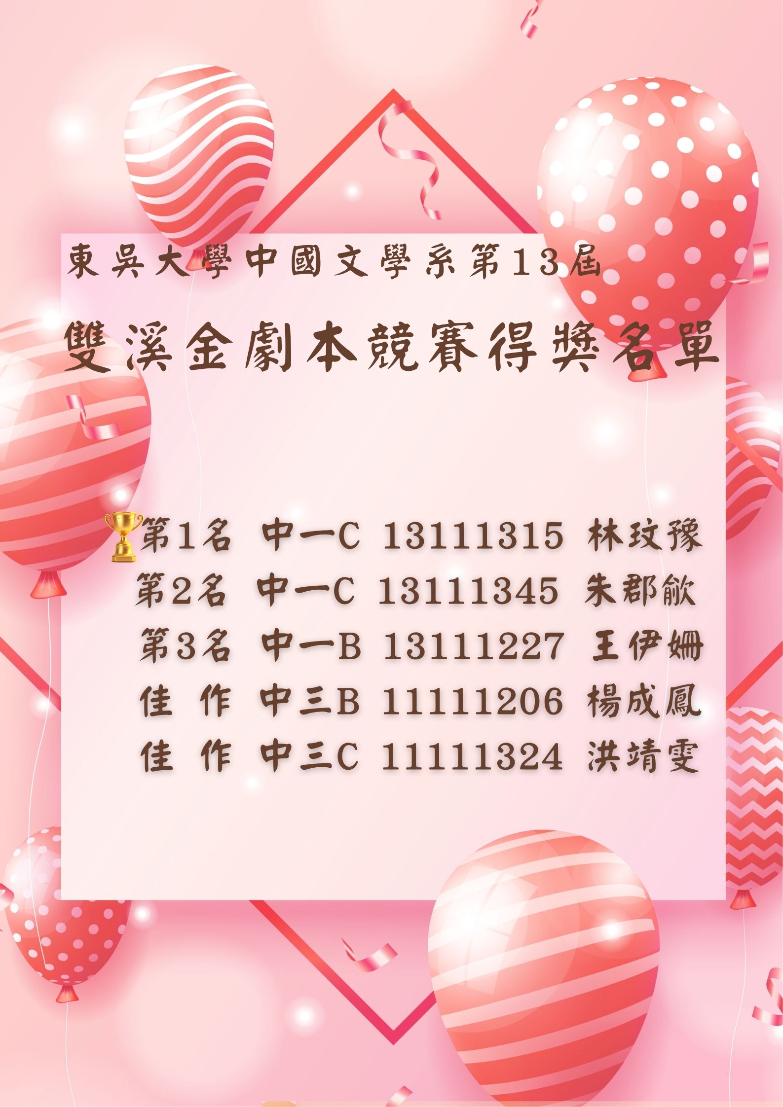 東吳大學第12屆「雙溪金劇本獎」