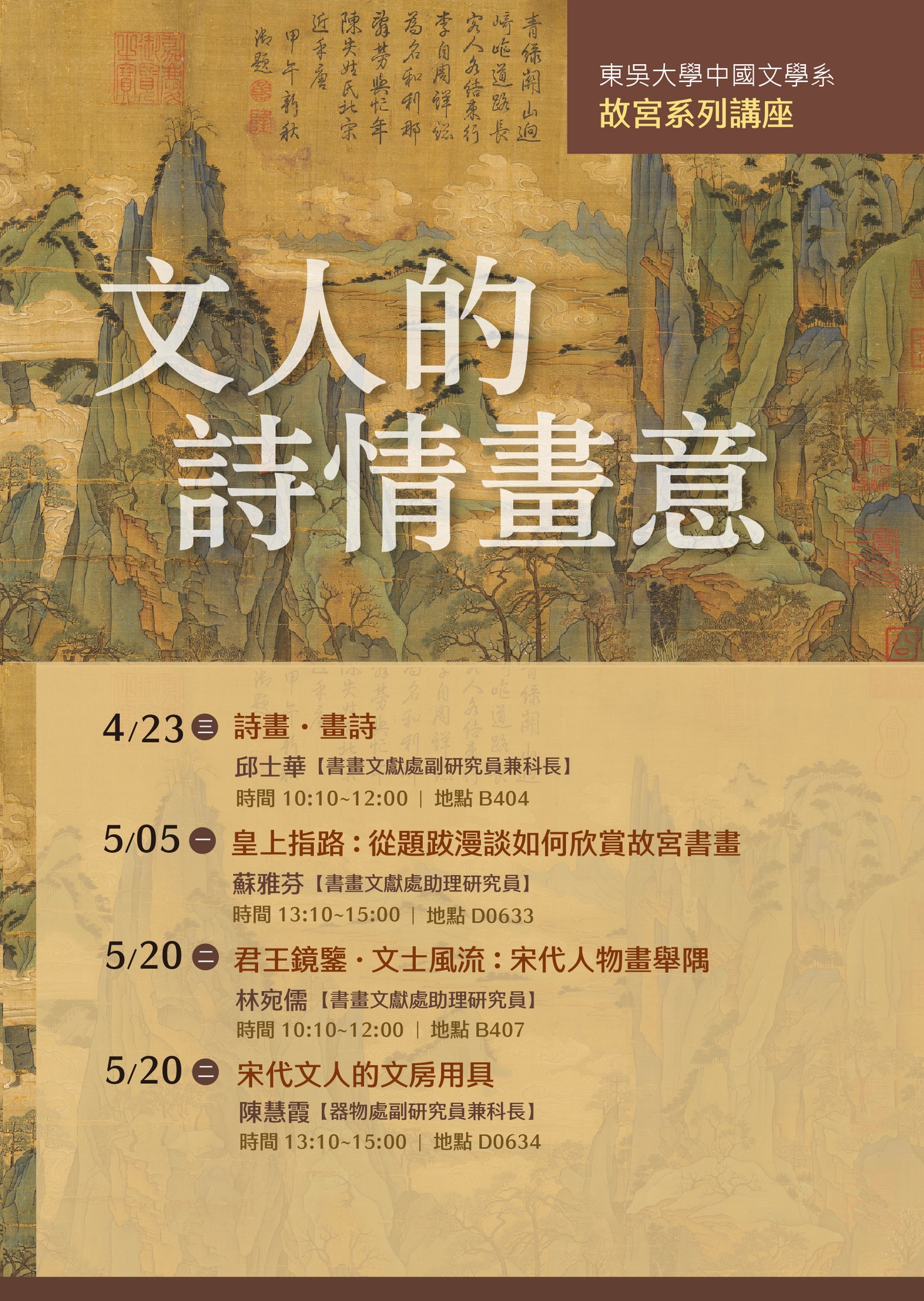 本系本學期與國立故宮博物院合辦系列講座,於5月20日邀請器物處陳慧霞副研究員兼科長於中三A「詞選及習作」課堂主講:「宋代文人的文房用具」。本場講座由授課教師柯秉芳老師擔任主持人。