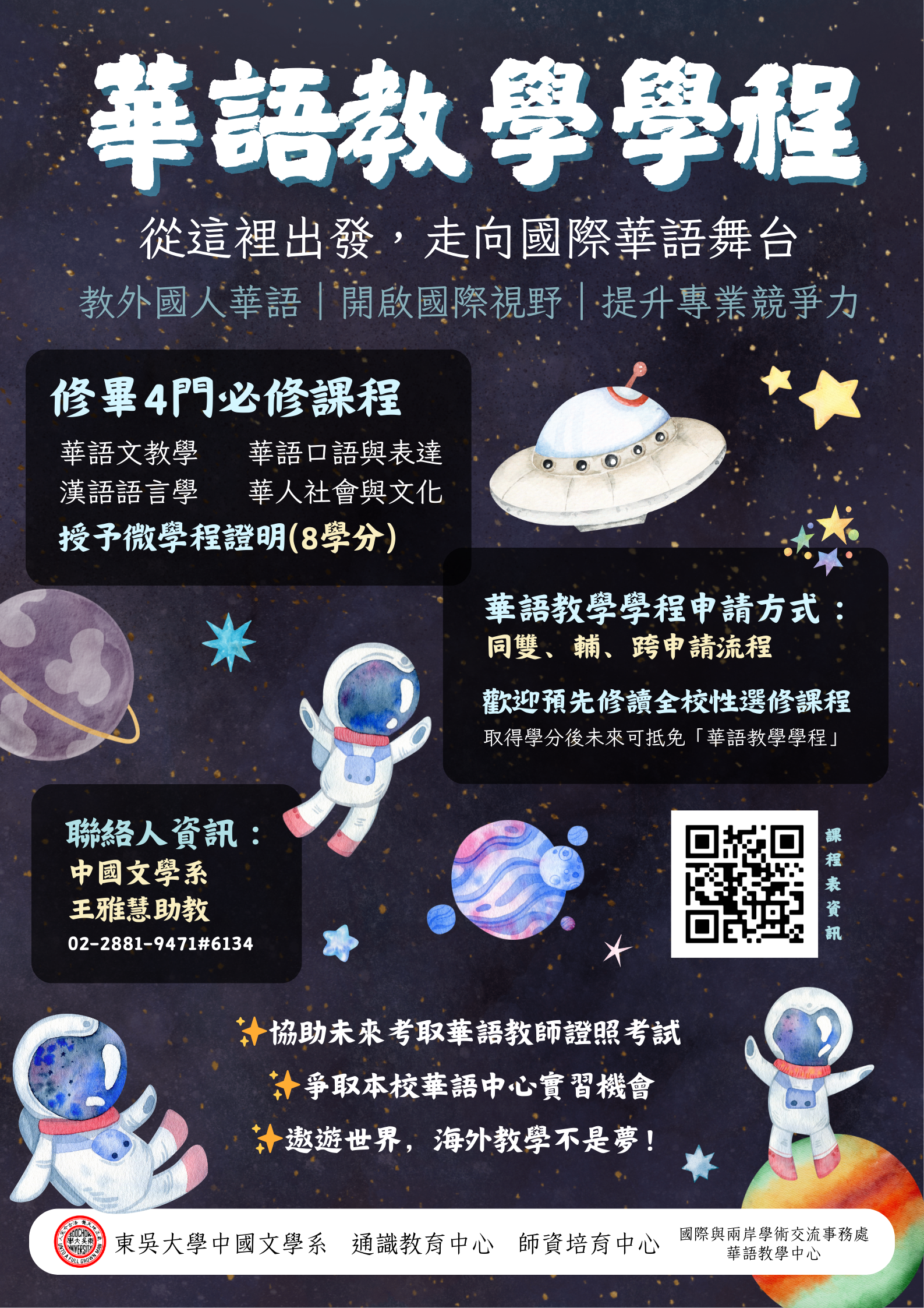 1)未來參加華語教師證照考試需修讀120小時以上的華語專業課程