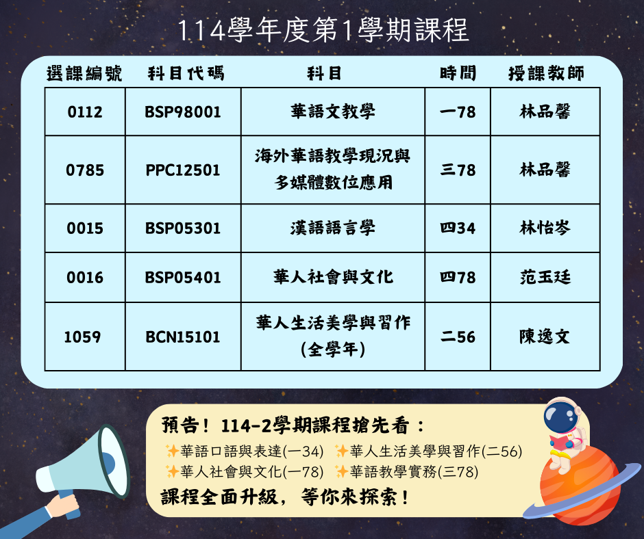 114學年度「華語教學學程」課程