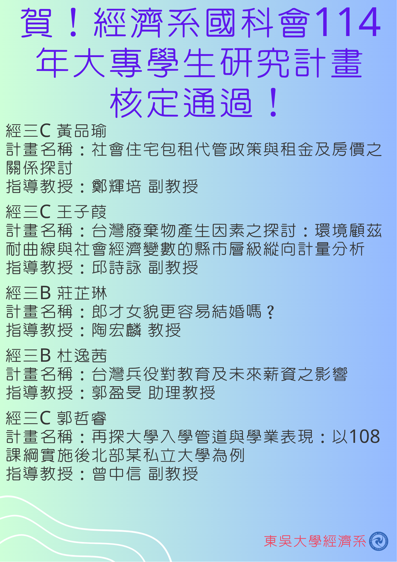東吳大學經濟學系《2024 外匯模擬交易競賽》得獎名單