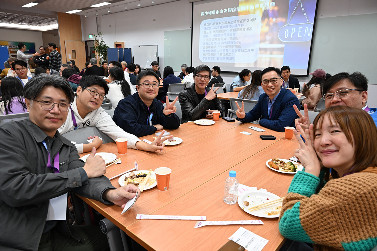 為了增進各領域系友的連結,系友會特別規劃「系友百業咖啡廳」交流環節,讓大家在輕鬆的氛圍下分享職場點滴與生活近況。雖然近年學系面臨教師世代交替,但新進老師們完美接棒,傳承對教育與研究的熱忱。這場活動不僅見證微生物系 45 年來的成長與規模,更展現微生物系如同一家人般「微光不滅,照亮長路」的溫馨凝聚力。