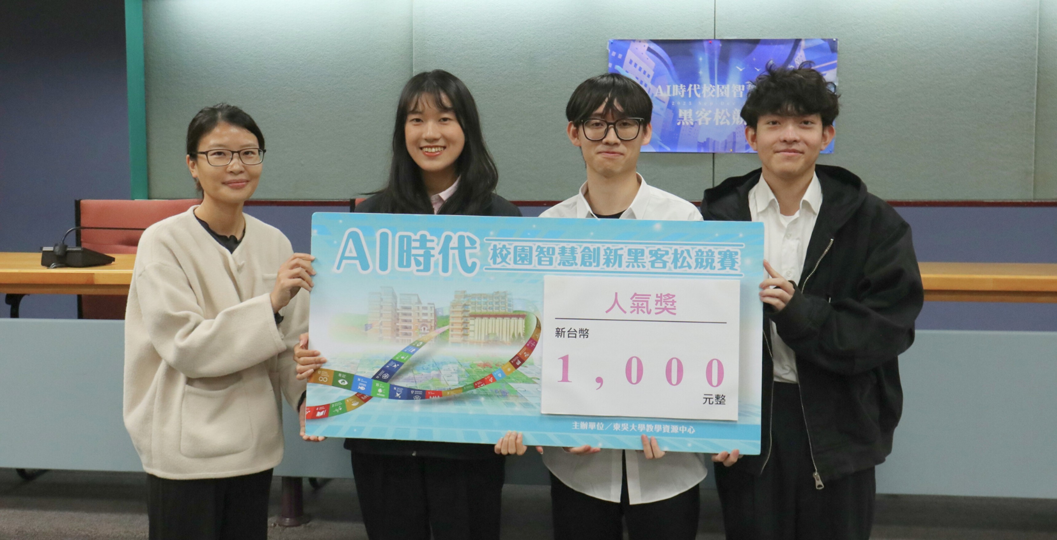 2025年「AI 時代:校園智慧創新黑客松競賽」在學生熱烈參與和師長全力支持下圓滿結束,感謝每一位投入創作、勇於挑戰與提出改變的師生。未來教學資源中心將持續推動跨域AI應用學習,並協助具落地潛力的團隊持續深化方案、連結資源,讓東吳成為學生實踐創意、打造智慧永續校園的最佳場域。期待來年有更多學生加入,以科技驅動更多更好的改變!