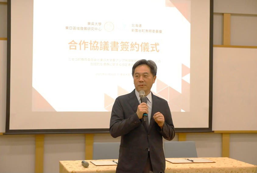 本校東亞區域發展研究中心(簡稱本中心)深耕大學社會責任(USR)與地方創生議題,於114年10月16日下午迎接日本北海道新雪谷町(ニセコ町,Niseko)教育委員會與新雪谷高中代表團蒞臨本校,並由本中心與日方正式簽署合作協定書。此舉不僅象徵臺日雙方在教育與地方創生合作邁入新里程,更是本中心連結國際資源、推動跨文化教育的重要成果。