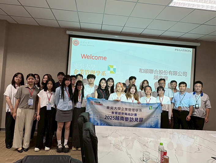 為拓展學生國際視野並培養跨國經營能力,東吳大學企業管理學系在教育部新南向計畫補助下,於2025年8月24日至9月6日前往越南河內進行為期14天的台資企業參訪見習活動。此次由企管系陳麗宇主任、林智偉副主任、尚榮安教授、范思美助理教授帶隊出發,共有20位學士班及研究所學生參與,深入了解台商在越南市場的經營與挑戰。