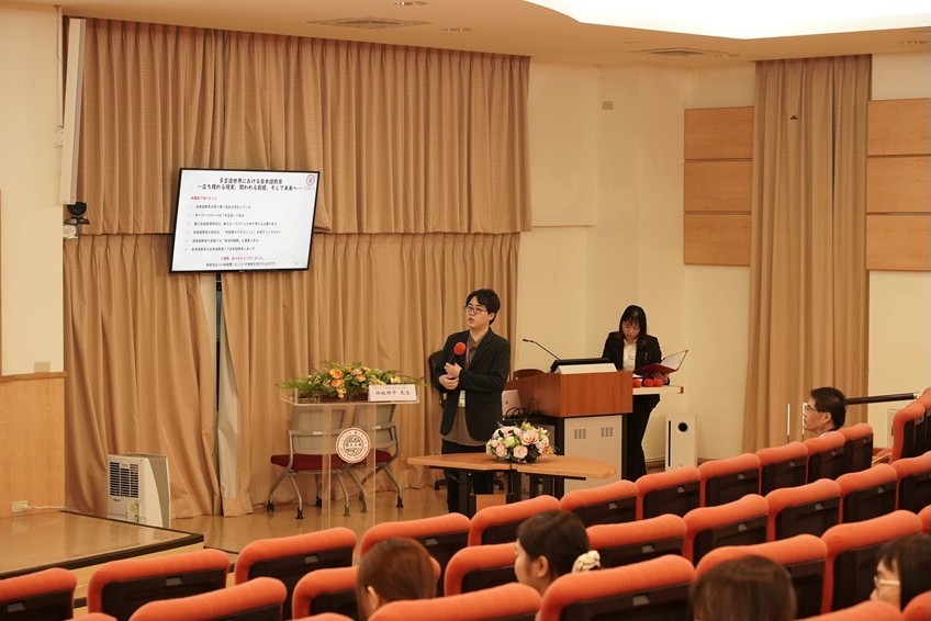 圓桌論壇以「東呉から始まった物語:日本語教師たちの軌跡」為題,邀請優秀日語教師分享寶貴的教育現場經驗。論壇後,由日本御茶水女子大學西坂祥平副教授發表演講,講題為「多言語世界における日本語教育—立ち現れる現実、問われる前提、そして未来へ—」,以前瞻性視角為日語教育的未來發展指明新方向。