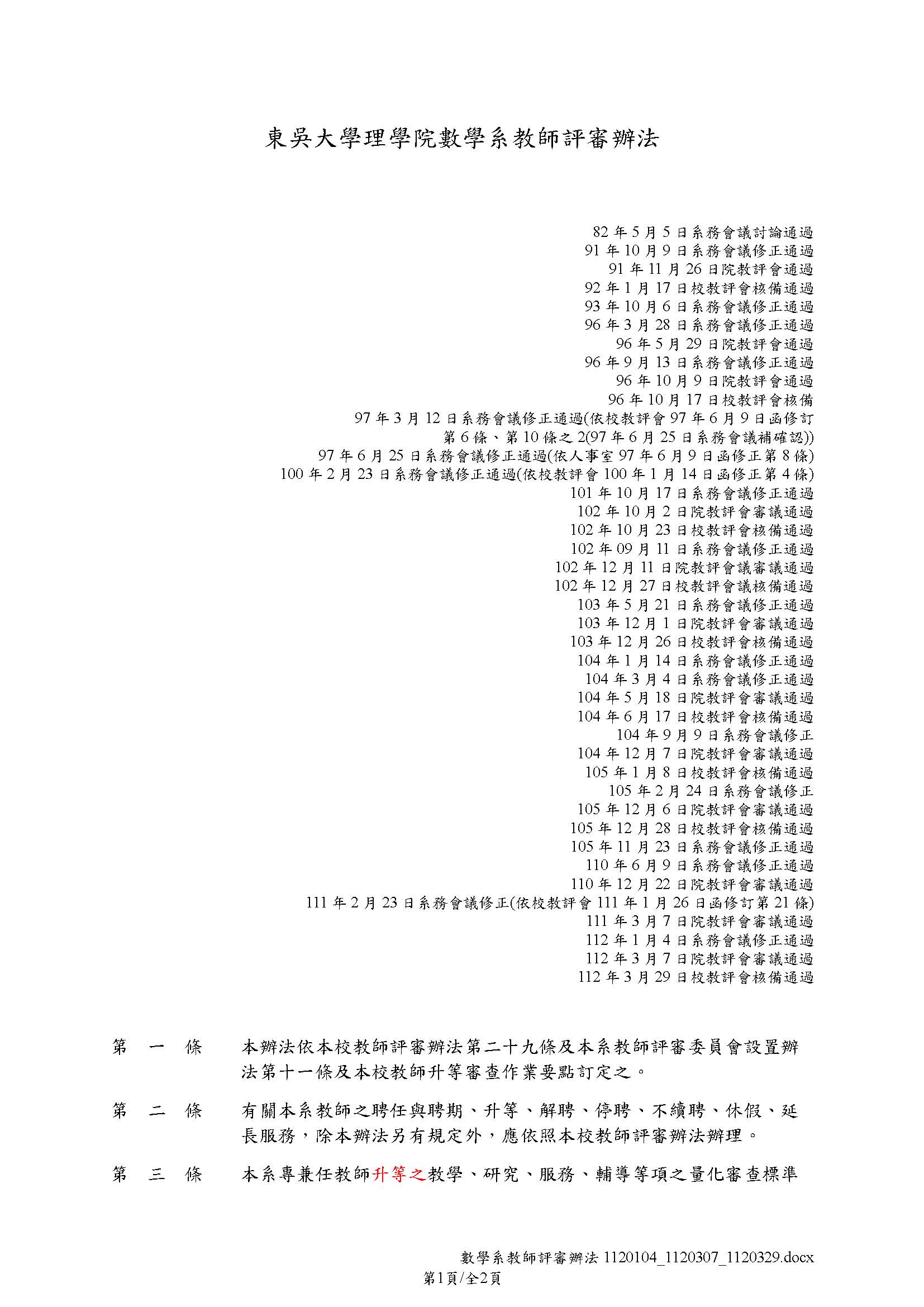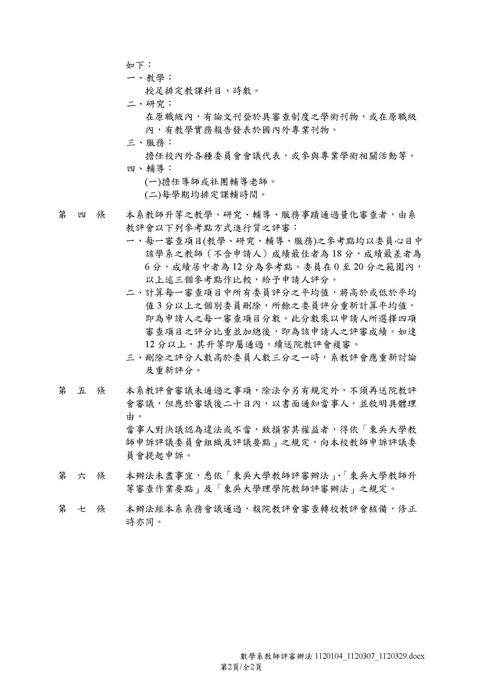 相關附件: 東吳大學理學院數學系教師評審辦法(1120329).pdf