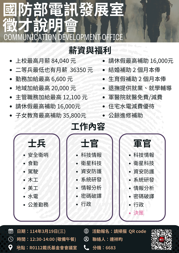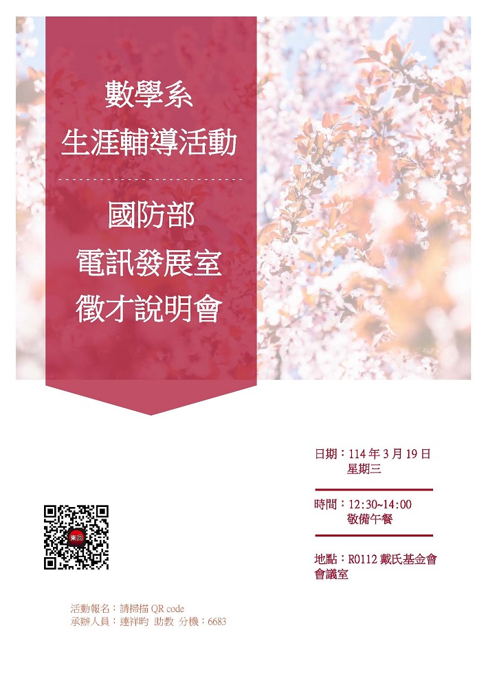 【數學系生涯輔導活動】國防部電訊發展室徵才活動。