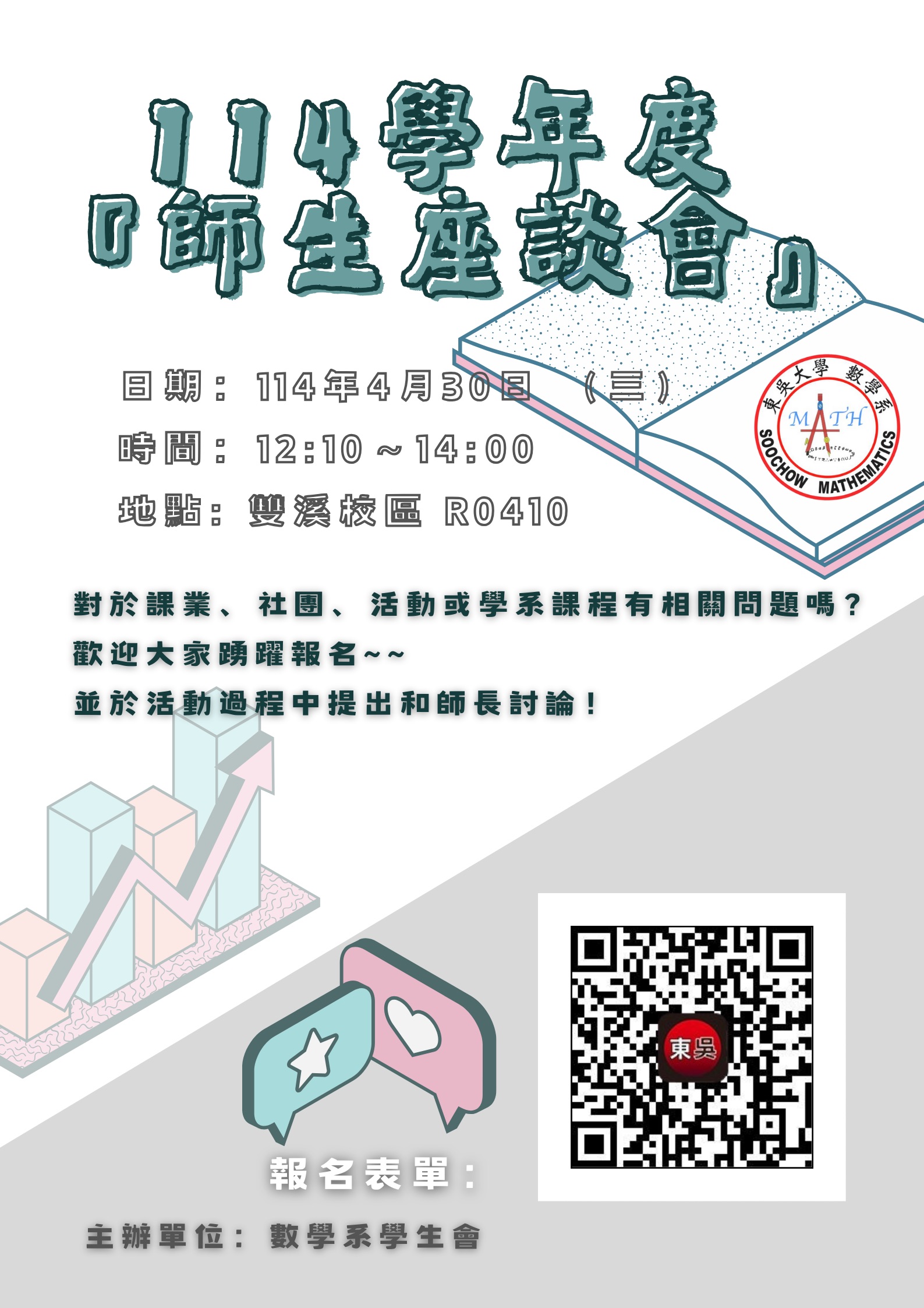 【數學系輔導活動】東吳大學數學系師生座談會。