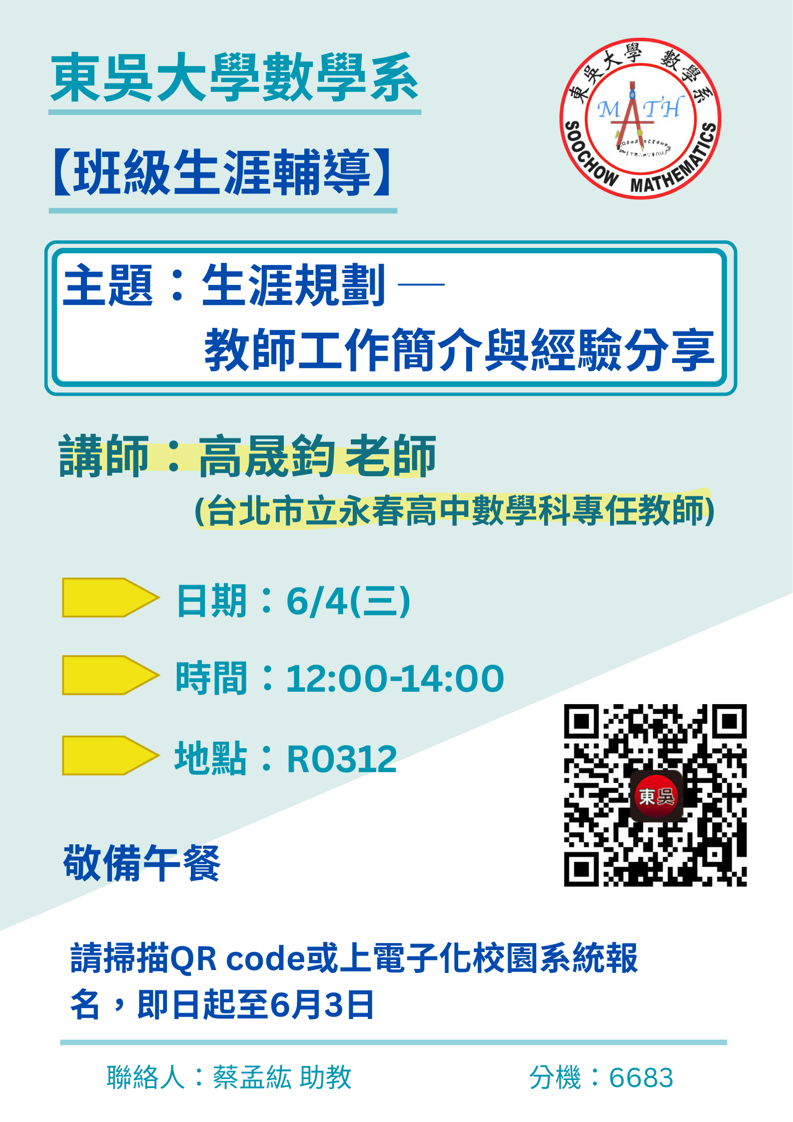 【數學系輔導活動】【班級生涯輔導】生涯規劃---教師工作簡介與經驗分享。