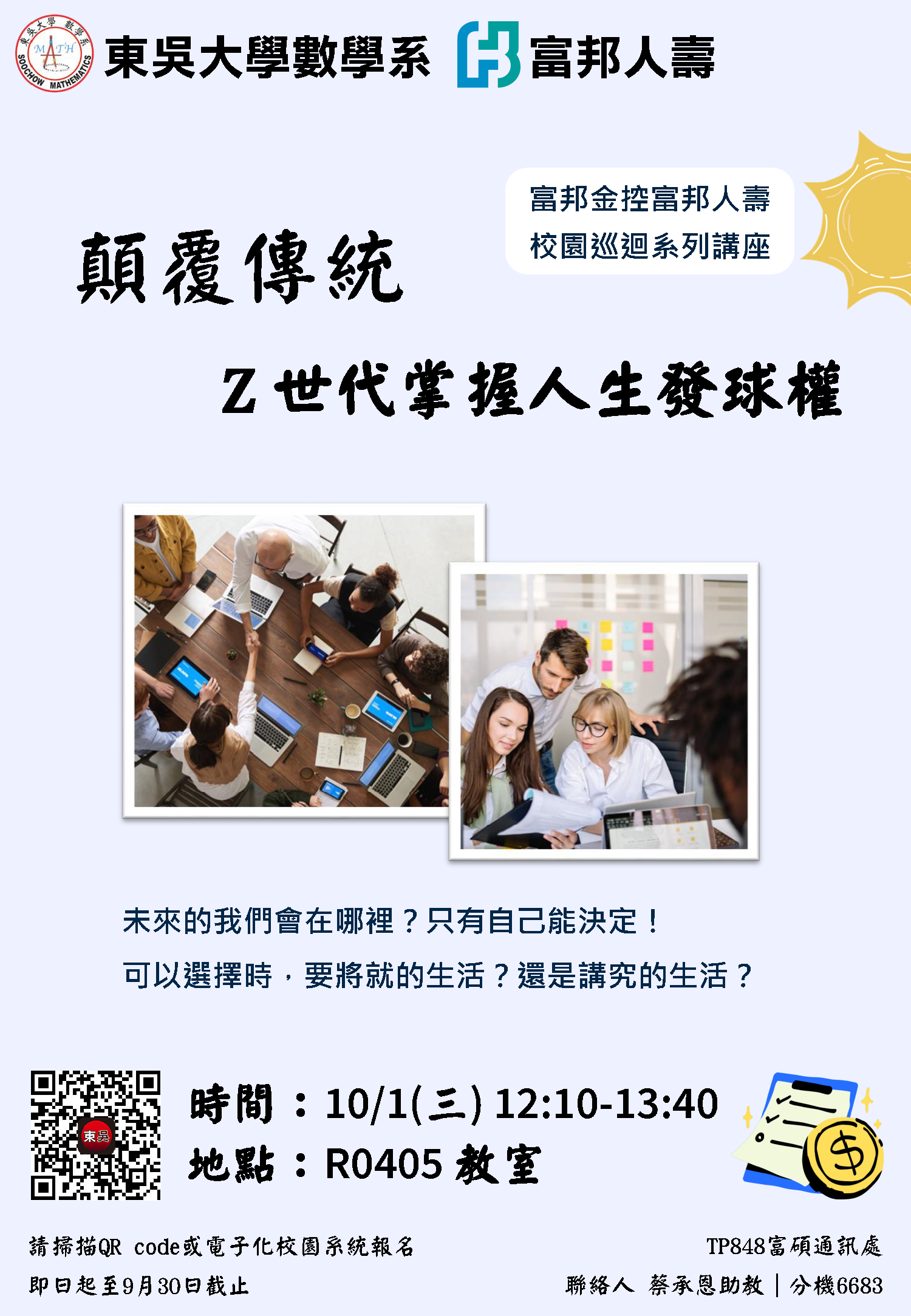 【數學系輔導活動】富邦金控富邦人壽校園巡迴系列講座。