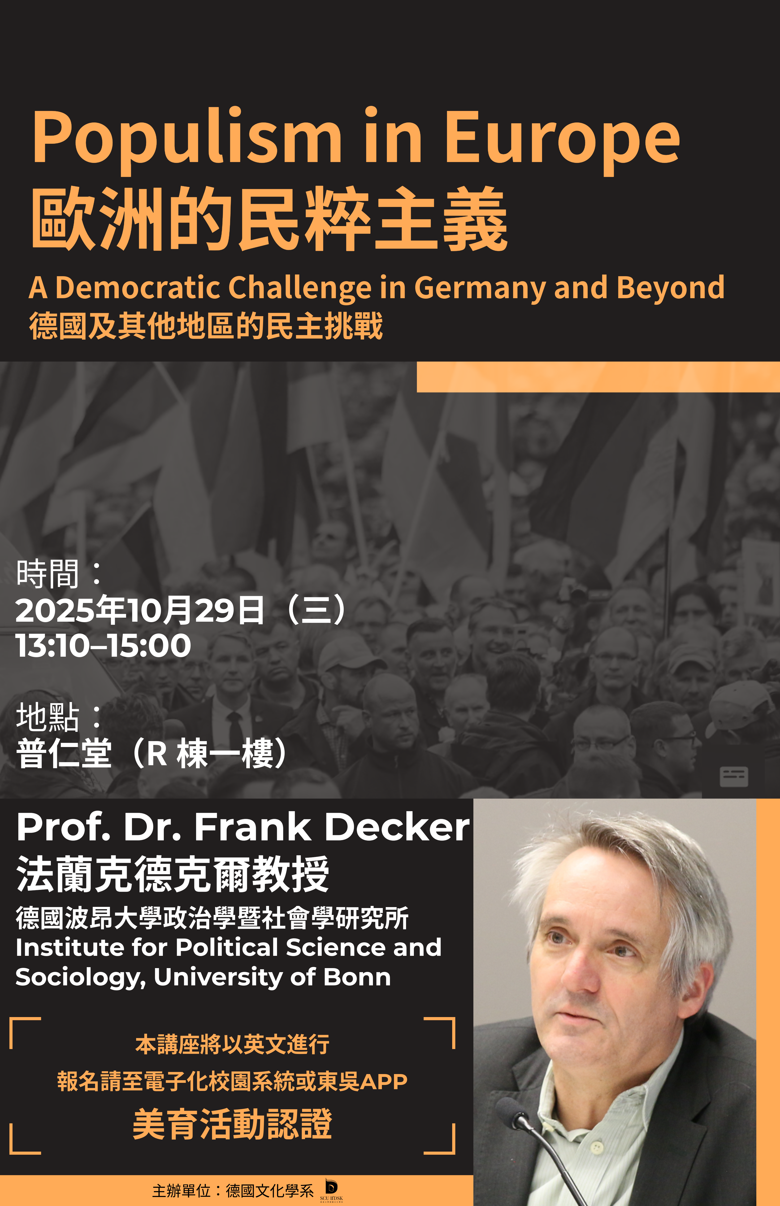 2025.10.29 【美育活動】德文系專題講座-歐洲的民粹主義:德國及其他地區的民主挑戰。