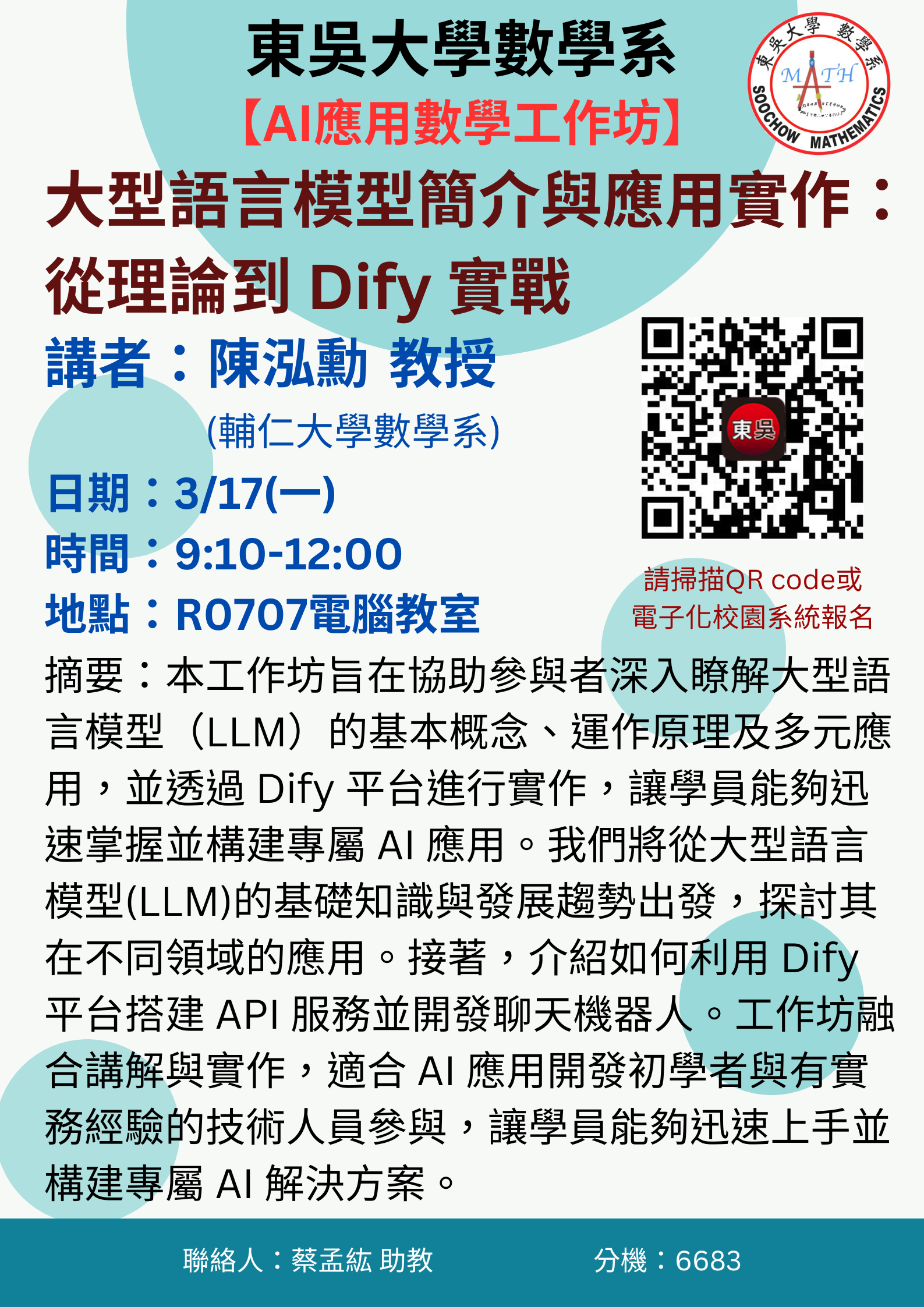 20250317【AI應用數學工作坊】 大型語言模型簡介與應用實作:從理論到Dify實戰。
