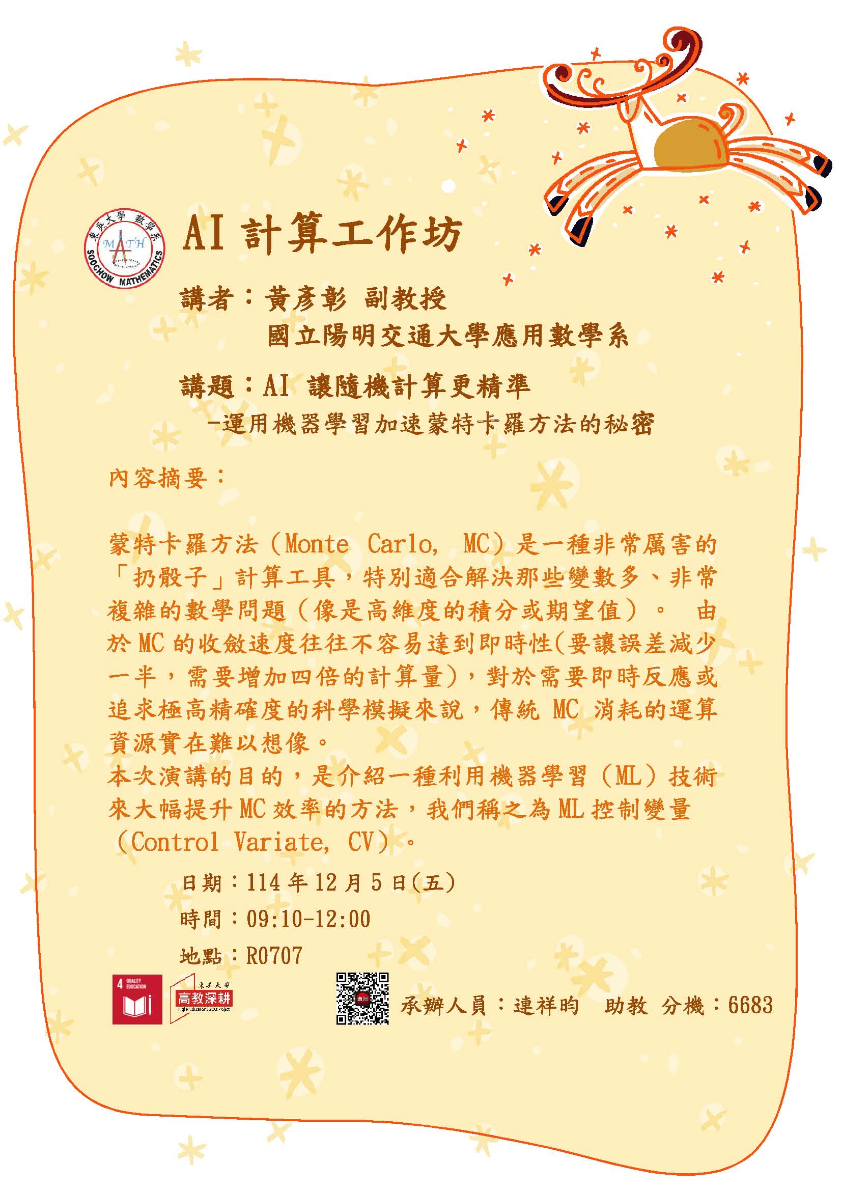 20251205【高教深耕】【AI計算工作坊】講題:AI 讓隨機計算更精準--運用機器學習加速蒙特卡羅方法的秘密。
