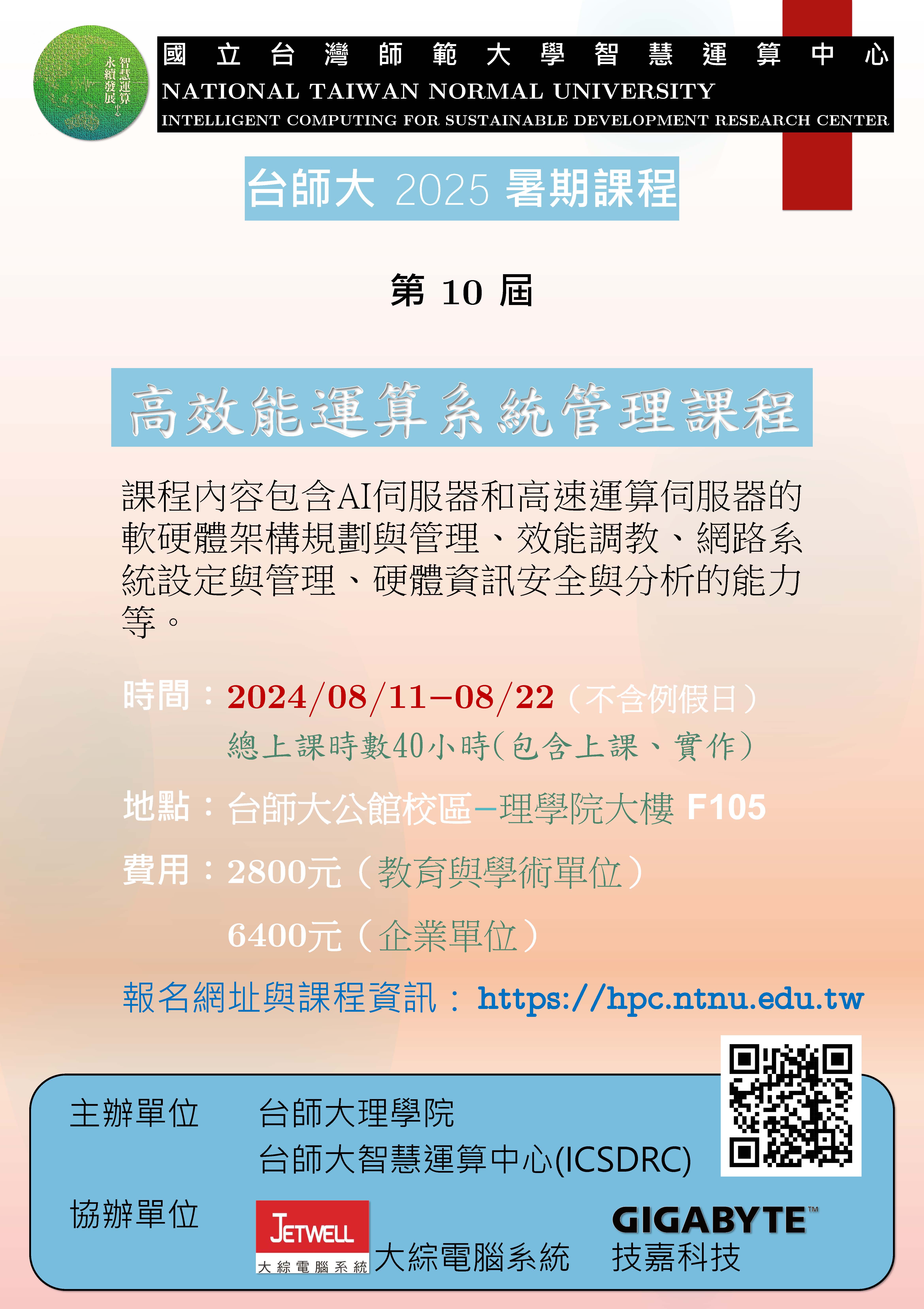 國立臺灣師範大學理學院雲端運算平台 HPC 管理課程資訊。