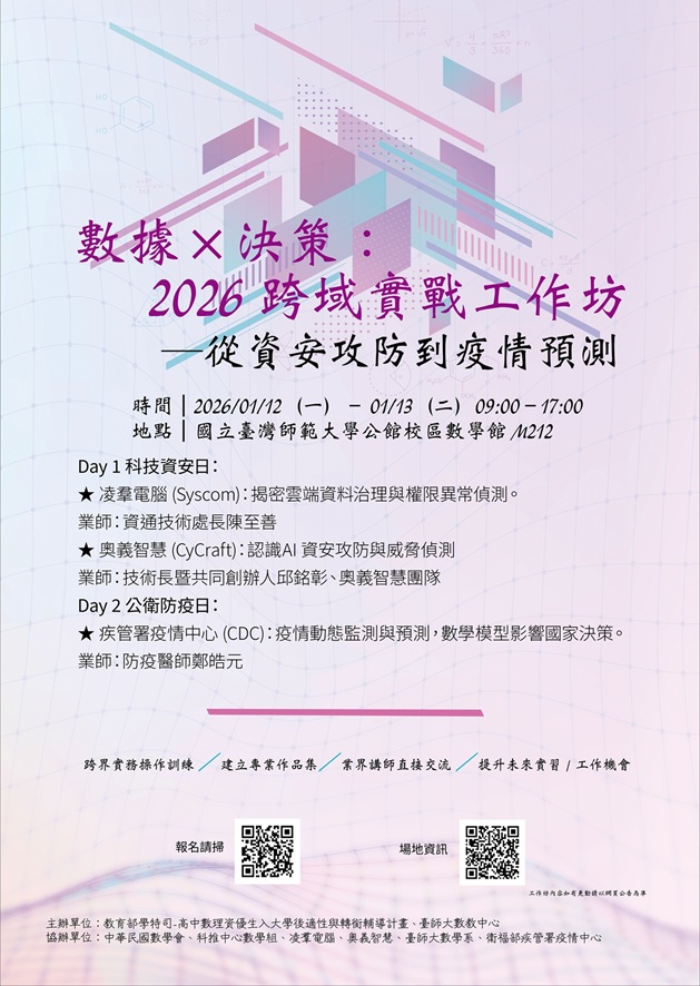 數據×決策:2026 跨域實戰工作坊─從資安攻防到疫情預測。